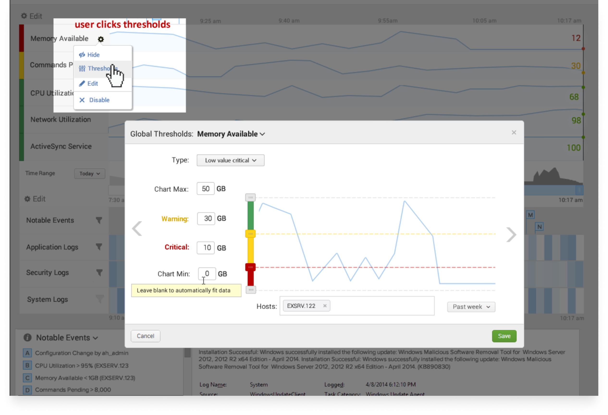 A traffic-light dashboard needs thresholds, and admins don’t have best-practice ranges for every Exchange KPI memorized. I built a configuration tool that pulled in historical KPI data so admins could set thresholds against their own baseline — not someone else’s best practices.